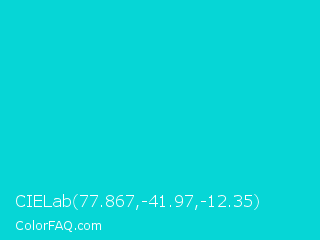 CIELab 77.867,-41.97,-12.35 Color is a normal cyan color and the nearest color is Dark Turquoise #00ced1. Hex code #06d6d6 and RGB value is rgb(6,214,214). In RGB color space, this color is composed of 2% red, 84% green, 84% blue, In CMYK color space, this color is composed of 97% cyan, 0% magenta, 0% yellow , 16% black , In HSL color space, this color has a hue angle of 180° , 95% saturation and 43% lightness.