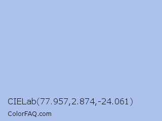 CIELab 77.957,2.874,-24.061 Color is a light blue color and the nearest color is Perano #a9bef2. Hex code #adc1ed and RGB value is rgb(173,193,237). In RGB color space, this color is composed of 68% red, 76% green, 93% blue, In CMYK color space, this color is composed of 27% cyan, 19% magenta, 0% yellow , 7% black , In HSL color space, this color has a hue angle of 221° , 64% saturation and 80% lightness.