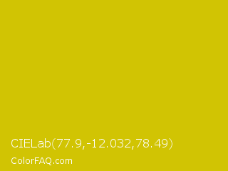 CIELab 77.9,-12.032,78.49 Color is a normal yellow color and the nearest color is Bird Flower #d4cd16. Hex code #d1c403 and RGB value is rgb(209,196,3). In RGB color space, this color is composed of 82% red, 77% green, 1% blue, In CMYK color space, this color is composed of 0% cyan, 6% magenta, 99% yellow , 18% black , In HSL color space, this color has a hue angle of 56° , 97% saturation and 42% lightness.