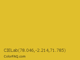 CIELab 78.046,-2.214,71.785 Color is a normal yellow color and the nearest color is Meat Brown #e5b73b. Hex code #e0bf2c and RGB value is rgb(224,191,44). In RGB color space, this color is composed of 88% red, 75% green, 17% blue, In CMYK color space, this color is composed of 0% cyan, 15% magenta, 80% yellow , 12% black , In HSL color space, this color has a hue angle of 49° , 74% saturation and 53% lightness.