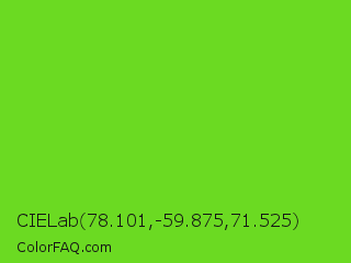 CIELab 78.101,-59.875,71.525 Color is a normal green color and the nearest color is Lima #76bd17. Hex code #6bda22 and RGB value is rgb(107,218,34). In RGB color space, this color is composed of 42% red, 85% green, 13% blue, In CMYK color space, this color is composed of 51% cyan, 0% magenta, 84% yellow , 15% black , In HSL color space, this color has a hue angle of 96° , 73% saturation and 49% lightness.