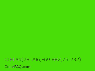 CIELab 78.296,-69.882,75.232 Color is a normal green color and the nearest color is Harlequin Green #46cb18. Hex code #4ade08 and RGB value is rgb(74,222,8). In RGB color space, this color is composed of 29% red, 87% green, 3% blue, In CMYK color space, this color is composed of 67% cyan, 0% magenta, 96% yellow , 13% black , In HSL color space, this color has a hue angle of 101° , 93% saturation and 45% lightness.