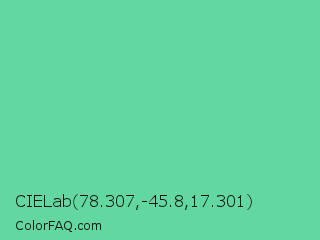 CIELab 78.307,-45.8,17.301 Color is a light green color and the nearest color is Medium Aquamarine #66ddaa. Hex code #62d7a0 and RGB value is rgb(98,215,160). In RGB color space, this color is composed of 38% red, 84% green, 63% blue, In CMYK color space, this color is composed of 54% cyan, 0% magenta, 26% yellow , 16% black , In HSL color space, this color has a hue angle of 152° , 59% saturation and 61% lightness.