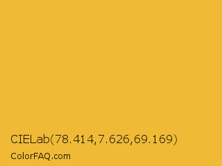 CIELab 78.414,7.626,69.169 Color is a normal orange color and the nearest color is Tulip Tree #eab33b. Hex code #f0ba37 and RGB value is rgb(240,186,55). In RGB color space, this color is composed of 94% red, 73% green, 22% blue, In CMYK color space, this color is composed of 0% cyan, 23% magenta, 77% yellow , 6% black , In HSL color space, this color has a hue angle of 42° , 86% saturation and 58% lightness.