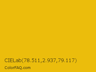 CIELab 78.511,2.937,79.117 Color is a normal yellow color and the nearest color is Corn #e7bf05. Hex code #ebbd0c and RGB value is rgb(235,189,12). In RGB color space, this color is composed of 92% red, 74% green, 5% blue, In CMYK color space, this color is composed of 0% cyan, 20% magenta, 95% yellow , 8% black , In HSL color space, this color has a hue angle of 48° , 90% saturation and 48% lightness.