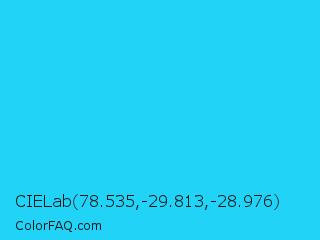 CIELab 78.535,-29.813,-28.976 Color is a normal cyan color and the nearest color is Spiro Disco Ball #0fc0fc. Hex code #21d4f7 and RGB value is rgb(33,212,247). In RGB color space, this color is composed of 13% red, 83% green, 97% blue, In CMYK color space, this color is composed of 87% cyan, 14% magenta, 0% yellow , 3% black , In HSL color space, this color has a hue angle of 190° , 93% saturation and 55% lightness.