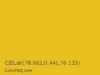 CIELab 78.662,0.441,76.133 Color is a normal yellow color and the nearest color is Gold Tips #deba13. Hex code #e7bf1e and RGB value is rgb(231,191,30). In RGB color space, this color is composed of 91% red, 75% green, 12% blue, In CMYK color space, this color is composed of 0% cyan, 17% magenta, 87% yellow , 9% black , In HSL color space, this color has a hue angle of 48° , 81% saturation and 51% lightness.