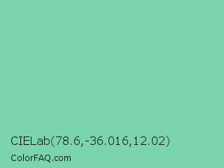 CIELab 78.6,-36.016,12.02 Color is a light green color and the nearest color is Vista Blue #8fd6b4. Hex code #7bd4ab and RGB value is rgb(123,212,171). In RGB color space, this color is composed of 48% red, 83% green, 67% blue, In CMYK color space, this color is composed of 42% cyan, 0% magenta, 19% yellow , 17% black , In HSL color space, this color has a hue angle of 152° , 51% saturation and 66% lightness.