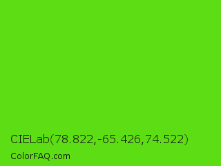 CIELab 78.822,-65.426,74.522 Color is a normal green color and the nearest color is Harlequin Green #46cb18. Hex code #5dde14 and RGB value is rgb(93,222,20). In RGB color space, this color is composed of 36% red, 87% green, 8% blue, In CMYK color space, this color is composed of 58% cyan, 0% magenta, 91% yellow , 13% black , In HSL color space, this color has a hue angle of 98° , 83% saturation and 47% lightness.