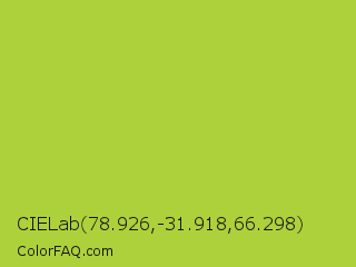 CIELab 78.926,-31.918,66.298 Color is a normal lime color and the nearest color is Android Green #a4c639. Hex code #add13b and RGB value is rgb(173,209,59). In RGB color space, this color is composed of 68% red, 82% green, 23% blue, In CMYK color space, this color is composed of 17% cyan, 0% magenta, 72% yellow , 18% black , In HSL color space, this color has a hue angle of 74° , 62% saturation and 53% lightness.