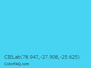 CIELab 78.947,-27.908,-25.625 Color is a light cyan color and the nearest color is Picton Blue #45b1e8. Hex code #47d4f2 and RGB value is rgb(71,212,242). In RGB color space, this color is composed of 28% red, 83% green, 95% blue, In CMYK color space, this color is composed of 71% cyan, 12% magenta, 0% yellow , 5% black , In HSL color space, this color has a hue angle of 191° , 87% saturation and 61% lightness.