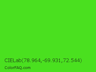 CIELab 78.964,-69.931,72.544 Color is a normal green color and the nearest color is Harlequin Green #46cb18. Hex code #4ae01f and RGB value is rgb(74,224,31). In RGB color space, this color is composed of 29% red, 88% green, 12% blue, In CMYK color space, this color is composed of 67% cyan, 0% magenta, 86% yellow , 12% black , In HSL color space, this color has a hue angle of 107° , 76% saturation and 50% lightness.