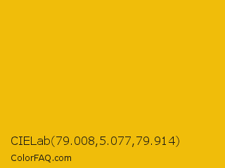 CIELab 79.008,5.077,79.914 Color is a normal yellow color and the nearest color is Corn #e7bf05. Hex code #f0bd0a and RGB value is rgb(240,189,10). In RGB color space, this color is composed of 94% red, 74% green, 4% blue, In CMYK color space, this color is composed of 0% cyan, 21% magenta, 96% yellow , 6% black , In HSL color space, this color has a hue angle of 47° , 92% saturation and 49% lightness.