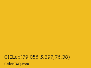 CIELab 79.056,5.397,76.38 Color is a normal orange color and the nearest color is Lightning Yellow #fcc01e. Hex code #f0bd20 and RGB value is rgb(240,189,32). In RGB color space, this color is composed of 94% red, 74% green, 13% blue, In CMYK color space, this color is composed of 0% cyan, 21% magenta, 87% yellow , 6% black , In HSL color space, this color has a hue angle of 45° , 87% saturation and 53% lightness.