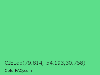 CIELab 79.814,-54.193,30.758 Color is a light green color and the nearest color is Very Light Malachite Green #64e986. Hex code #5cde8a and RGB value is rgb(92,222,138). In RGB color space, this color is composed of 36% red, 87% green, 54% blue, In CMYK color space, this color is composed of 59% cyan, 0% magenta, 38% yellow , 13% black , In HSL color space, this color has a hue angle of 141° , 66% saturation and 62% lightness.