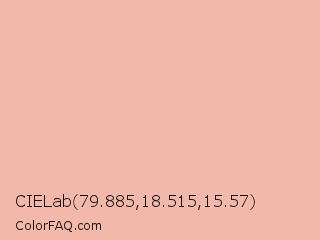 CIELab 79.885,18.515,15.57 Color is a very light red color and the nearest color is Melon Crayola #febaad. Hex code #f2b9aa and RGB value is rgb(242,185,170). In RGB color space, this color is composed of 95% red, 73% green, 67% blue, In CMYK color space, this color is composed of 0% cyan, 24% magenta, 30% yellow , 5% black , In HSL color space, this color has a hue angle of 13° , 73% saturation and 81% lightness.