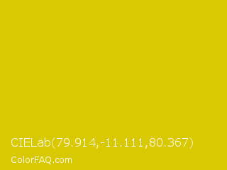 CIELab 79.914,-11.111,80.367 Color is a normal yellow color and the nearest color is Citrine #e4d00a. Hex code #d9c902 and RGB value is rgb(217,201,2). In RGB color space, this color is composed of 85% red, 79% green, 1% blue, In CMYK color space, this color is composed of 0% cyan, 7% magenta, 99% yellow , 15% black , In HSL color space, this color has a hue angle of 56° , 98% saturation and 43% lightness.