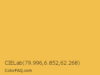 CIELab 79.996,6.852,62.268 Color is a light orange color and the nearest color is Maximum Yellow Red #f2ba49. Hex code #f2bf4d and RGB value is rgb(242,191,77). In RGB color space, this color is composed of 95% red, 75% green, 30% blue, In CMYK color space, this color is composed of 0% cyan, 21% magenta, 68% yellow , 5% black , In HSL color space, this color has a hue angle of 41° , 86% saturation and 63% lightness.