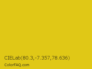 CIELab 80.3,-7.357,78.636 Color is a normal yellow color and the nearest color is Bird Flower #d4cd16. Hex code #e0c816 and RGB value is rgb(224,200,22). In RGB color space, this color is composed of 88% red, 78% green, 9% blue, In CMYK color space, this color is composed of 0% cyan, 11% magenta, 90% yellow , 12% black , In HSL color space, this color has a hue angle of 53° , 82% saturation and 48% lightness.