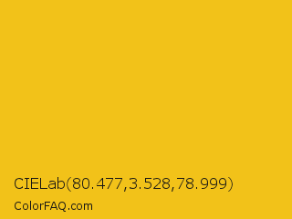 CIELab 80.477,3.528,78.999 Color is a normal yellow color and the nearest color is Deep Lemon #f5c71a. Hex code #f2c219 and RGB value is rgb(242,194,25). In RGB color space, this color is composed of 95% red, 76% green, 10% blue, In CMYK color space, this color is composed of 0% cyan, 20% magenta, 90% yellow , 5% black , In HSL color space, this color has a hue angle of 47° , 89% saturation and 52% lightness.
