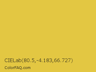 CIELab 80.5,-4.183,66.727 Color is a normal yellow color and the nearest color is Ronchi #ecc54e. Hex code #e3c742 and RGB value is rgb(227,199,66). In RGB color space, this color is composed of 89% red, 78% green, 26% blue, In CMYK color space, this color is composed of 0% cyan, 12% magenta, 71% yellow , 11% black , In HSL color space, this color has a hue angle of 50° , 74% saturation and 57% lightness.
