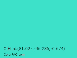 CIELab 81.027,-46.286,-0.674 Color is a normal cyan color and the nearest color is Turquoise #40e0d0. Hex code #3de0c9 and RGB value is rgb(61,224,201). In RGB color space, this color is composed of 24% red, 88% green, 79% blue, In CMYK color space, this color is composed of 73% cyan, 0% magenta, 10% yellow , 12% black , In HSL color space, this color has a hue angle of 172° , 72% saturation and 56% lightness.