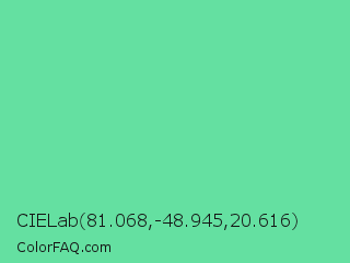 CIELab 81.068,-48.945,20.616 Color is a light green color and the nearest color is Medium Aquamarine #66ddaa. Hex code #64e0a1 and RGB value is rgb(100,224,161). In RGB color space, this color is composed of 39% red, 88% green, 63% blue, In CMYK color space, this color is composed of 55% cyan, 0% magenta, 28% yellow , 12% black , In HSL color space, this color has a hue angle of 150° , 67% saturation and 64% lightness.