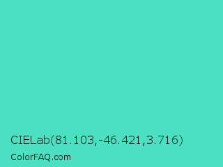 CIELab 81.103,-46.421,3.716 Color is a normal cyan color and the nearest color is Turquoise #40e0d0. Hex code #4be0c1 and RGB value is rgb(75,224,193). In RGB color space, this color is composed of 29% red, 88% green, 76% blue, In CMYK color space, this color is composed of 67% cyan, 0% magenta, 14% yellow , 12% black , In HSL color space, this color has a hue angle of 168° , 71% saturation and 59% lightness.