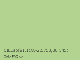 CIELab 81.118,-22.753,30.145 Color is a light green color and the nearest color is Pine Glade #c7cd90. Hex code #b3d490 and RGB value is rgb(179,212,144). In RGB color space, this color is composed of 70% red, 83% green, 56% blue, In CMYK color space, this color is composed of 16% cyan, 0% magenta, 32% yellow , 17% black , In HSL color space, this color has a hue angle of 89° , 44% saturation and 70% lightness.