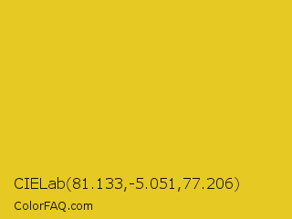 CIELab 81.133,-5.051,77.206 Color is a normal yellow color and the nearest color is Sunflower #e4d422. Hex code #e6c922 and RGB value is rgb(230,201,34). In RGB color space, this color is composed of 90% red, 79% green, 13% blue, In CMYK color space, this color is composed of 0% cyan, 13% magenta, 85% yellow , 10% black , In HSL color space, this color has a hue angle of 51° , 80% saturation and 52% lightness.
