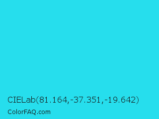 CIELab 81.164,-37.351,-19.642 Color is a normal cyan color and the nearest color is Loeen #15f2fd. Hex code #26deed and RGB value is rgb(38,222,237). In RGB color space, this color is composed of 15% red, 87% green, 93% blue, In CMYK color space, this color is composed of 84% cyan, 6% magenta, 0% yellow , 7% black , In HSL color space, this color has a hue angle of 185° , 85% saturation and 54% lightness.