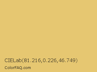 CIELab 81.216,0.226,46.749 Color is a light orange color and the nearest color is Rob Roy #eac674. Hex code #e6c771 and RGB value is rgb(230,199,113). In RGB color space, this color is composed of 90% red, 78% green, 44% blue, In CMYK color space, this color is composed of 0% cyan, 13% magenta, 51% yellow , 10% black , In HSL color space, this color has a hue angle of 44° , 70% saturation and 67% lightness.
