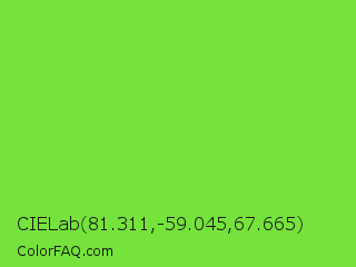 CIELab 81.311,-59.045,67.665 Color is a normal green color and the nearest color is Kiwi #8ee53f. Hex code #75e33b and RGB value is rgb(117,227,59). In RGB color space, this color is composed of 46% red, 89% green, 23% blue, In CMYK color space, this color is composed of 48% cyan, 0% magenta, 74% yellow , 11% black , In HSL color space, this color has a hue angle of 99° , 75% saturation and 56% lightness.