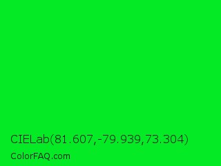 CIELab 81.607,-79.939,73.304 Color is a normal green color and the nearest color is Vivid Malachite #00cc33. Hex code #04eb25 and RGB value is rgb(4,235,37). In RGB color space, this color is composed of 2% red, 92% green, 15% blue, In CMYK color space, this color is composed of 98% cyan, 0% magenta, 84% yellow , 8% black , In HSL color space, this color has a hue angle of 129° , 97% saturation and 47% lightness.