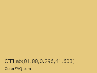 CIELab 81.88,0.296,41.603 Color is a light orange color and the nearest color is Rob Roy #eac674. Hex code #e6c97d and RGB value is rgb(230,201,125). In RGB color space, this color is composed of 90% red, 79% green, 49% blue, In CMYK color space, this color is composed of 0% cyan, 13% magenta, 46% yellow , 10% black , In HSL color space, this color has a hue angle of 43° , 68% saturation and 70% lightness.