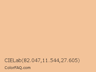 CIELab 82.047,11.544,27.605 Color is a light orange color and the nearest color is Manhattan #f5c999. Hex code #f3c399 and RGB value is rgb(243,195,153). In RGB color space, this color is composed of 95% red, 76% green, 60% blue, In CMYK color space, this color is composed of 0% cyan, 20% magenta, 37% yellow , 5% black , In HSL color space, this color has a hue angle of 28° , 79% saturation and 78% lightness.