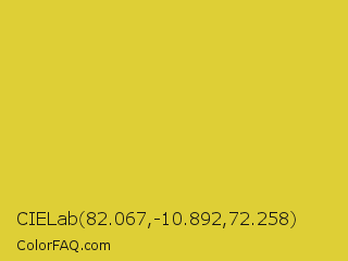 CIELab 82.067,-10.892,72.258 Color is a normal yellow color and the nearest color is Sandstorm #ecd540. Hex code #decf36 and RGB value is rgb(222,207,54). In RGB color space, this color is composed of 87% red, 81% green, 21% blue, In CMYK color space, this color is composed of 0% cyan, 7% magenta, 76% yellow , 13% black , In HSL color space, this color has a hue angle of 55° , 72% saturation and 54% lightness.