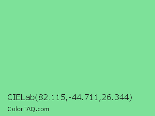 CIELab 82.115,-44.711,26.344 Color is a light green color and the nearest color is Light Green #90ee90. Hex code #7de199 and RGB value is rgb(125,225,153). In RGB color space, this color is composed of 49% red, 88% green, 60% blue, In CMYK color space, this color is composed of 44% cyan, 0% magenta, 32% yellow , 12% black , In HSL color space, this color has a hue angle of 137° , 63% saturation and 69% lightness.