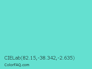 CIELab 82.15,-38.342,-2.635 Color is a light cyan color and the nearest color is Downy #6fd0c5. Hex code #64e0d0 and RGB value is rgb(100,224,208). In RGB color space, this color is composed of 39% red, 88% green, 82% blue, In CMYK color space, this color is composed of 55% cyan, 0% magenta, 7% yellow , 12% black , In HSL color space, this color has a hue angle of 172° , 67% saturation and 64% lightness.