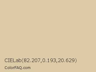 CIELab 82.207,0.193,20.629 Color is a light orange color and the nearest color is Sapling #ded4a4. Hex code #dccba6 and RGB value is rgb(220,203,166). In RGB color space, this color is composed of 86% red, 80% green, 65% blue, In CMYK color space, this color is composed of 0% cyan, 8% magenta, 25% yellow , 14% black , In HSL color space, this color has a hue angle of 41° , 44% saturation and 76% lightness.