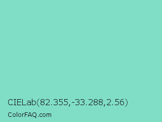 CIELab 82.355,-33.288,2.56 Color is a light cyan color and the nearest color is Bermuda #7dd8c6. Hex code #80dec7 and RGB value is rgb(128,222,199). In RGB color space, this color is composed of 50% red, 87% green, 78% blue, In CMYK color space, this color is composed of 42% cyan, 0% magenta, 10% yellow , 13% black , In HSL color space, this color has a hue angle of 165° , 59% saturation and 69% lightness.