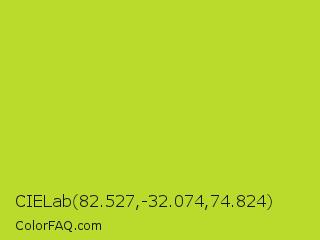 CIELab 82.527,-32.074,74.824 Color is a normal lime color and the nearest color is Key Lime Pie #bfc921. Hex code #badb2b and RGB value is rgb(186,219,43). In RGB color space, this color is composed of 73% red, 86% green, 17% blue, In CMYK color space, this color is composed of 15% cyan, 0% magenta, 80% yellow , 14% black , In HSL color space, this color has a hue angle of 71° , 71% saturation and 51% lightness.