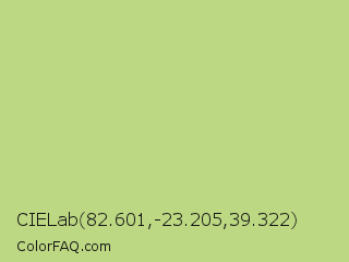 CIELab 82.601,-23.205,39.322 Color is a light green color and the nearest color is Medium Spring Bud #c9dc87. Hex code #bcd882 and RGB value is rgb(188,216,130). In RGB color space, this color is composed of 74% red, 85% green, 51% blue, In CMYK color space, this color is composed of 13% cyan, 0% magenta, 40% yellow , 15% black , In HSL color space, this color has a hue angle of 80° , 52% saturation and 68% lightness.
