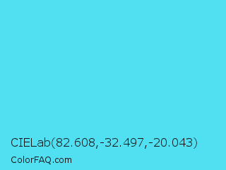 CIELab 82.608,-32.497,-20.043 Color is a light cyan color and the nearest color is Turquoise Blue #6cdae7. Hex code #50e0f2 and RGB value is rgb(80,224,242). In RGB color space, this color is composed of 31% red, 88% green, 95% blue, In CMYK color space, this color is composed of 67% cyan, 7% magenta, 0% yellow , 5% black , In HSL color space, this color has a hue angle of 187° , 86% saturation and 63% lightness.