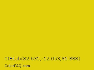 CIELab 82.631,-12.053,81.888 Color is a normal yellow color and the nearest color is Citrine #e4d00a. Hex code #e0d10a and RGB value is rgb(224,209,10). In RGB color space, this color is composed of 88% red, 82% green, 4% blue, In CMYK color space, this color is composed of 0% cyan, 7% magenta, 96% yellow , 12% black , In HSL color space, this color has a hue angle of 56° , 91% saturation and 46% lightness.