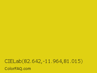 CIELab 82.642,-11.964,81.015 Color is a normal yellow color and the nearest color is Barberry #ded717. Hex code #e0d112 and RGB value is rgb(224,209,18). In RGB color space, this color is composed of 88% red, 82% green, 7% blue, In CMYK color space, this color is composed of 0% cyan, 7% magenta, 92% yellow , 12% black , In HSL color space, this color has a hue angle of 56° , 85% saturation and 47% lightness.