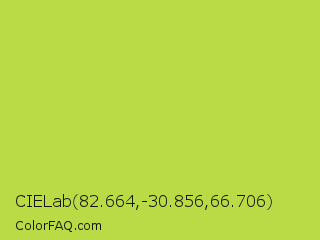 CIELab 82.664,-30.856,66.706 Color is a normal lime color and the nearest color is Conifer #acdd4d. Hex code #badb45 and RGB value is rgb(186,219,69). In RGB color space, this color is composed of 73% red, 86% green, 27% blue, In CMYK color space, this color is composed of 15% cyan, 0% magenta, 68% yellow , 14% black , In HSL color space, this color has a hue angle of 73° , 68% saturation and 56% lightness.