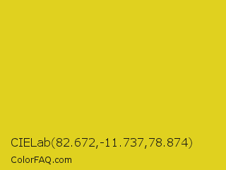 CIELab 82.672,-11.737,78.874 Color is a normal yellow color and the nearest color is Sunflower #e4d422. Hex code #e0d11f and RGB value is rgb(224,209,31). In RGB color space, this color is composed of 88% red, 82% green, 12% blue, In CMYK color space, this color is composed of 0% cyan, 7% magenta, 86% yellow , 12% black , In HSL color space, this color has a hue angle of 55° , 76% saturation and 50% lightness.