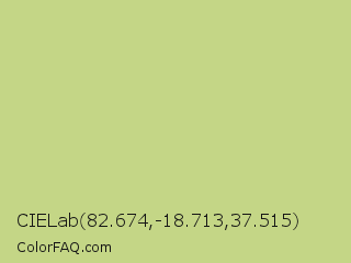 CIELab 82.674,-18.713,37.515 Color is a light lime color and the nearest color is Medium Spring Bud #c9dc87. Hex code #c4d686 and RGB value is rgb(196,214,134). In RGB color space, this color is composed of 77% red, 84% green, 53% blue, In CMYK color space, this color is composed of 8% cyan, 0% magenta, 37% yellow , 16% black , In HSL color space, this color has a hue angle of 74° , 49% saturation and 68% lightness.