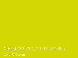 CIELab 82.732,-20.952,81.865 Color is a normal yellow color and the nearest color is Bitter Lemon #cae00d. Hex code #d1d605 and RGB value is rgb(209,214,5). In RGB color space, this color is composed of 82% red, 84% green, 2% blue, In CMYK color space, this color is composed of 2% cyan, 0% magenta, 98% yellow , 16% black , In HSL color space, this color has a hue angle of 61° , 95% saturation and 43% lightness.